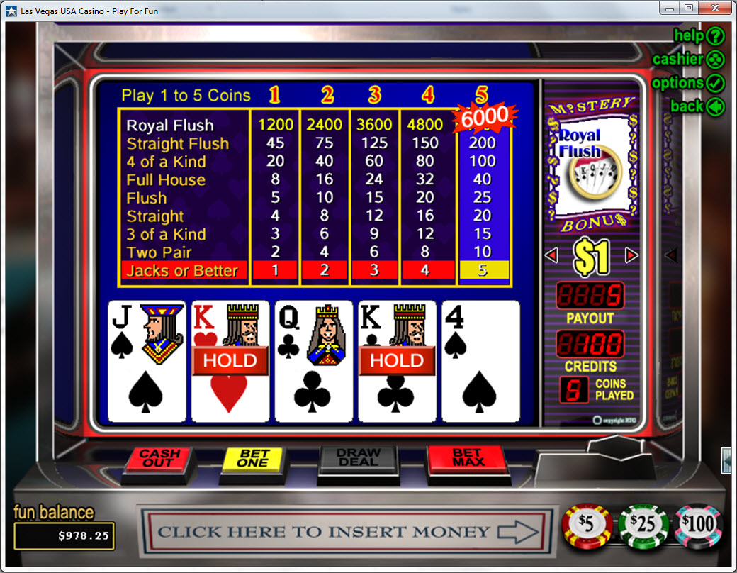 神秘奖金是由Realtime Gaming推出的一款视频扑克游戏。它基于传统的视频扑克。不同之处在于,游戏会在随机选择的牌局中,在奖金中添加一笔“神秘奖金”。哪一手牌获得神秘奖金将在发牌时确定。下表列出了每手牌的常规奖金(基于总下注金额)、该手牌的神秘奖金以及扣除神秘奖金后的总奖金。