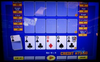 在普通的电子扑克游戏中,上面这手牌的正确玩法应该是去争取外顺子。然而,我看得出下一张牌是梅花6,这会导致顺子听牌失败。所以我只保留了黑桃6,因为我知道下一张牌会和它配对,而且之后我还有三张牌可以提升小对子。