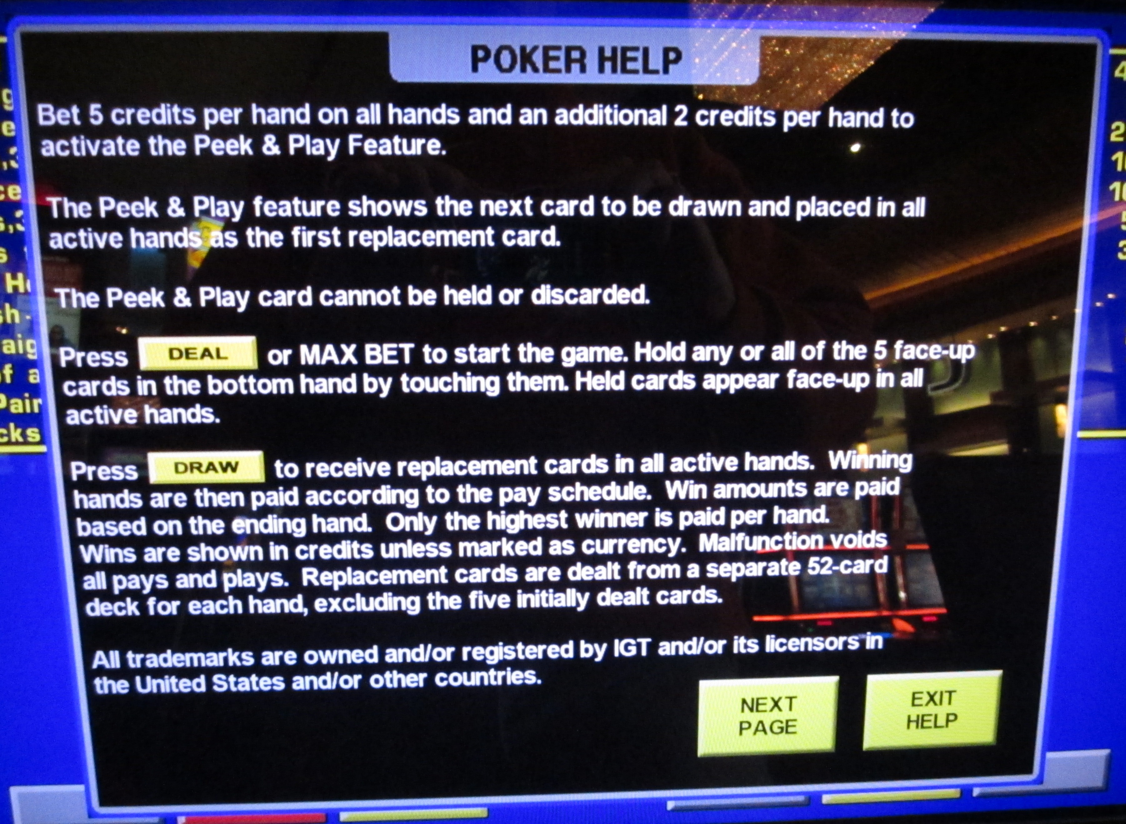 - 除了额外的两枚硬币用于支付 Peek and Play 功能外,它还会增加某些牌局的赔付表。