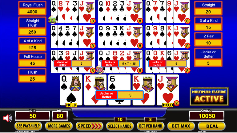 - 如果玩家每次下注一到五个积分,游戏就会像传统的视频扑克一样进行。