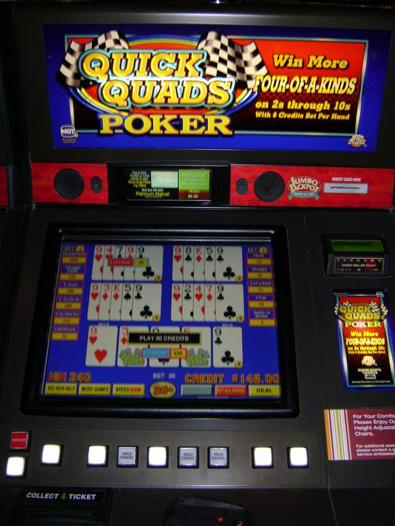 Quick Quads 是一款视频扑克游戏,我第一次注意到它是在 2008 年 9 月的 Red Rock 赌场。每手牌最初下注五个硬币时,游戏玩法与普通的多人玩视频扑克类似。如果玩家选择下注第六个硬币,则可以将两张牌加在一起组成四条。例如,如果玩家有 99936,那么他可以将 3 和 6 加起来组成第四个 9。像 66633 这样的葫芦也可以算作四条。只有 2 到 10 的四条才算作 Quick Quads,而 A 算作一分。有时,如果玩家下注第六个硬币,游戏还会提高四条的胜率。下注第六个硬币后,玩家将获得大约 2.7 倍的四条。