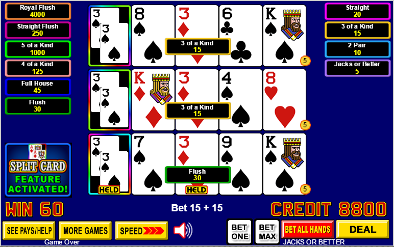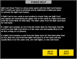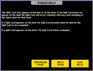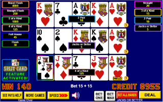 以下是我收到的分牌扑克游戏和赔率表。不过,这些回报与传统视频扑克的回报相同。请耐心等待,我正在查询分牌扑克的回报。(更新日期:2015年12月2日)