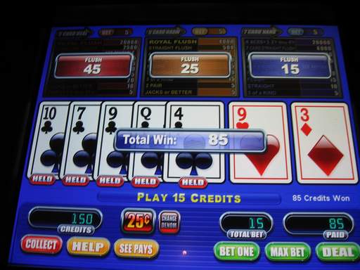 第一个硬币投注用于五张牌发牌投注,第二个硬币投注用于五张牌抽牌投注,第三个硬币投注用于七张牌。后续硬币投注重复此循环。与大多数视频扑克游戏一样,最高牌型的赔付在最大硬币投注下会更高。以下赔付表是基于最大硬币投注的每枚硬币计算的。以下赔付表是我所知的最高赔付表,其他赔付表在“回报”部分有说明。