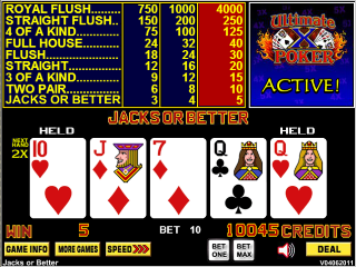 Ultimate X 是一款流行的视频扑克游戏。其特点是,如果玩家加倍下注,那么任何一手牌不仅会根据赔率表赔付,还会在下一手牌中获得乘数。本页面介绍的是 Ultimate-X Poker 的单线版本,可在 Five Star 老虎机上使用。我有一个单独的页面介绍多线版本。