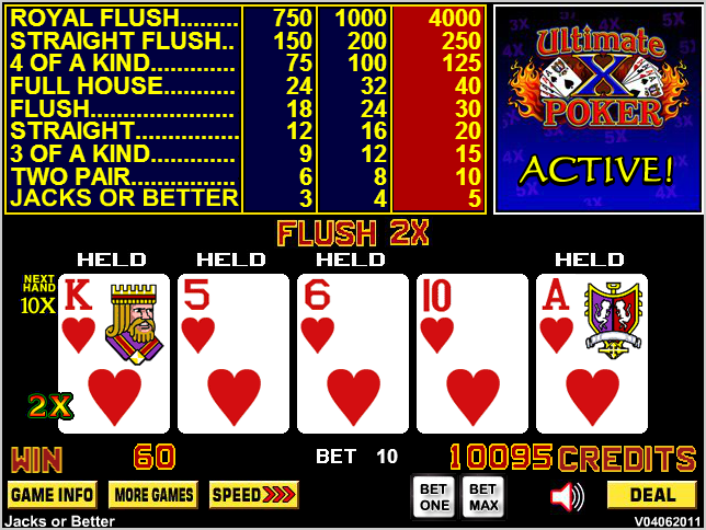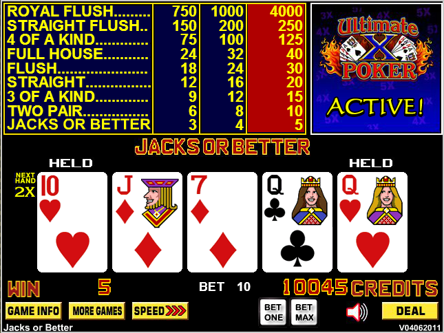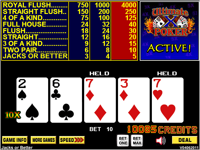 VideoPoker.com上有一款非常逼真的 Ultimate X 游戏。需要免费会员资格。