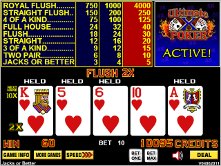 - 只需下注一到五个硬币,游戏就会进行传统的单线视频扑克。
