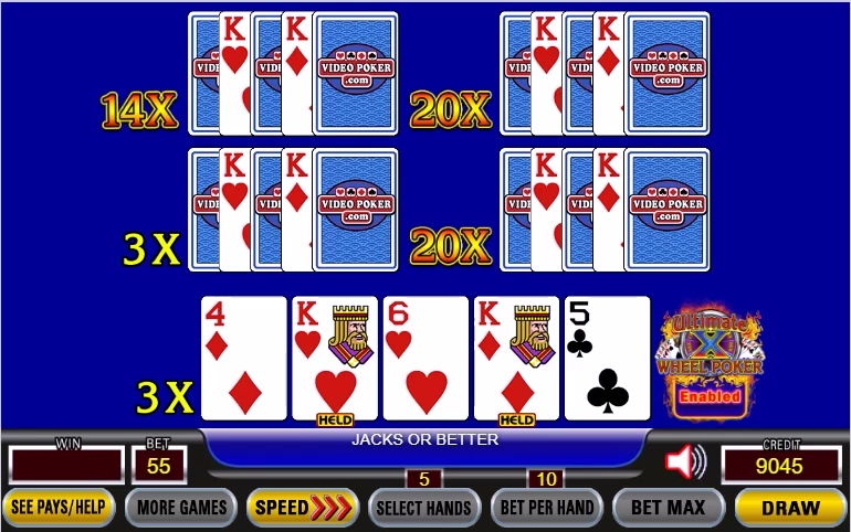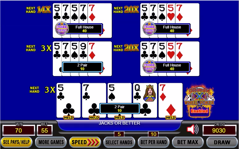 - Ultimate X Wheel Poker 仅提供 3 场和 5 场游戏。