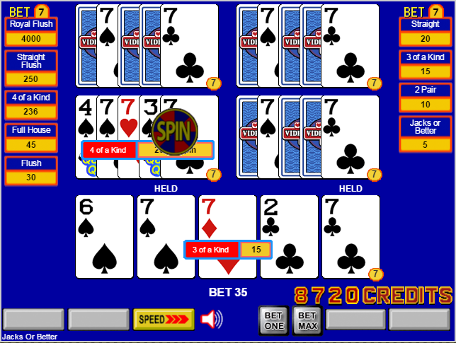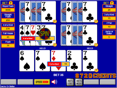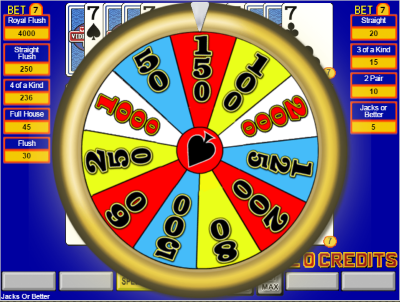 - VideoPoker.com允许使用其 Wheel Poker with Quick Quads 游戏的截图,该游戏仅供金牌会员使用。