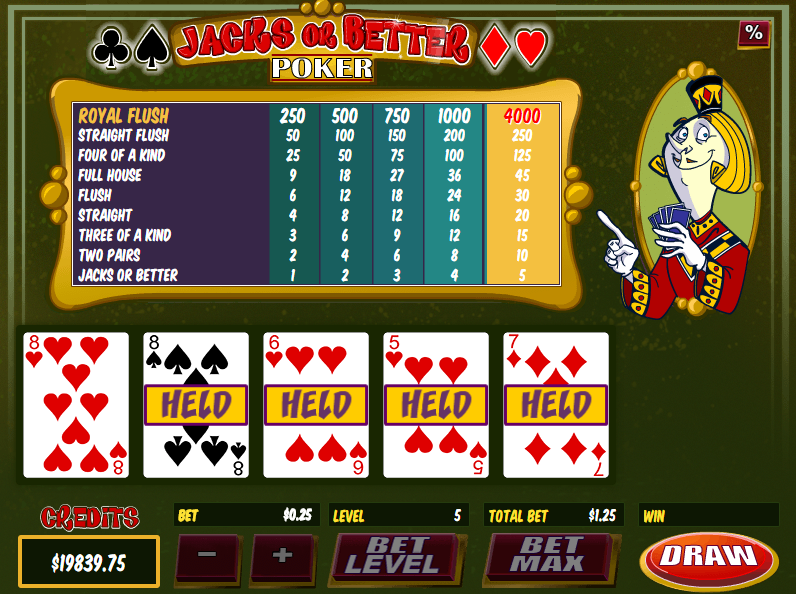 策略满付Jacks或更好对子:满付Deuces Wild 2点王牌: