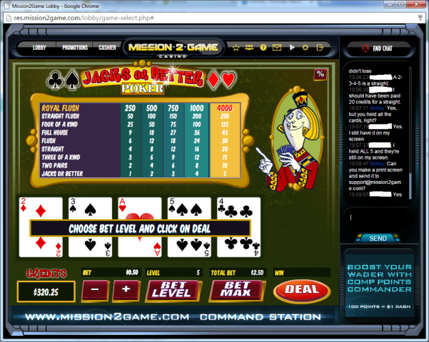 按照在线规则来看,这些游戏看起来都像是传统的“Jacks or Better”视频扑克。规则中既没有明确规定A不能算作低分,也没有否认这一点。为了区别于普通的视频扑克,我特意取名为“无轮子”,因为扑克术语中称A-2-3-4-5顺子为“轮子”。