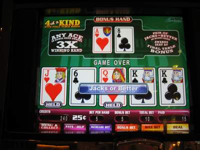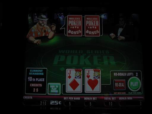 菜单上这款游戏的名字是“四条扑克”,虽然赔率表和红利扑克一样。我没被告知免费座位的概率,但根据WMS关于这款游戏的文献,我估计概率是700分之一。