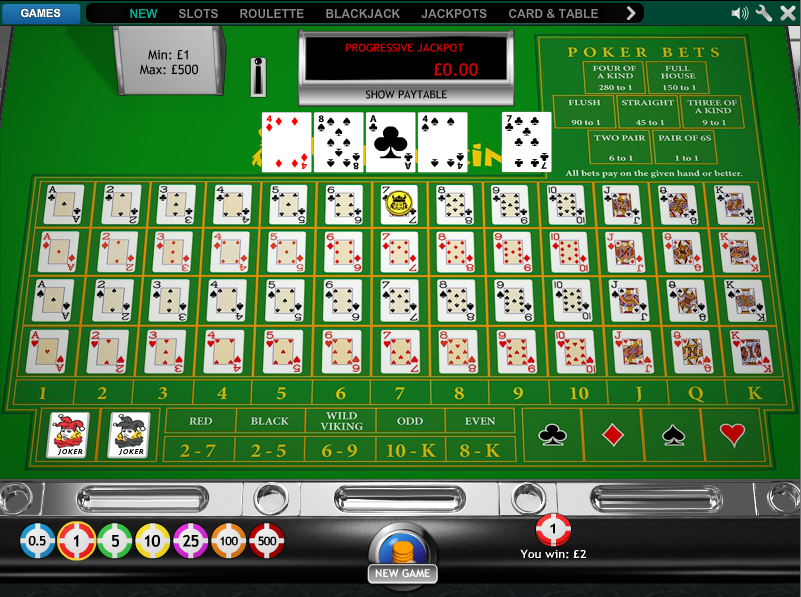 Wild Viking 可以粗略地描述为一款使用纸牌而非轮盘和滚珠的轮盘游戏。游戏会从一副 54 张牌的牌堆中发出五张牌(包括两张鬼牌)。玩家可以押注最后一张牌是什么。此外,还有根据五张牌的扑克牌点数进行赔付的扑克投注。您可以在使用Playtech软件的在线赌场玩这款游戏。