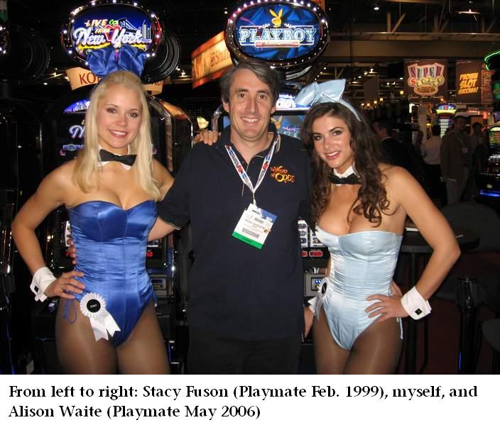 游戏展上经常会有名人出席,今年我见到了扮演JJ或《好时光》的演员吉米·沃克,还和他合了张影。我试图用我对《好时光》的趣闻轶事来打动他,但他完全不以为然。他说他从来没看过这个节目,而且显然不喜欢谈论它。我还像往常一样和花花公子兔女郎和其他模特合影。在这张照片里,金发兔女郎责备我摸了她的尾巴。我的网站管理员迈克尔·布鲁杰说她这样做是对的。