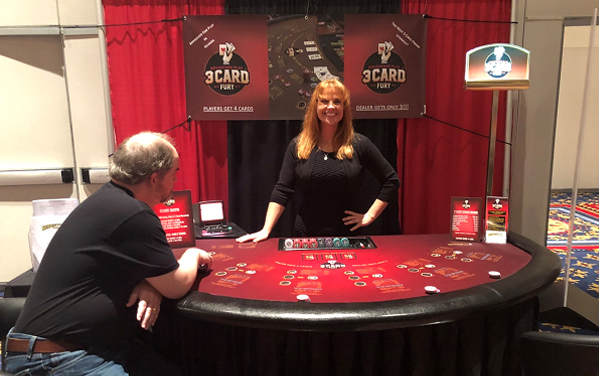 排名第三的是“三张牌狂怒”(3 Card Fury)。需要注意的是,这局牌是由拉斯维加斯最棒的荷官、模特兼演员安吉拉(Angela)发牌的。我无意贬低这款游戏,但她的魅力确实起了一定作用,这一点我并不感到惊讶。“三张牌狂怒”可以粗略地描述为“三张牌扑克”(Three Card Poker)和“疯狂四张扑克”(Crazy 4 Poker)的结合体。在这个游戏中,玩家拿到四张牌,庄家拿到三张牌。赢取的筹码是必需的初始赌注之一——“三张牌怪兽”(3 Card Monster),它必须同时获胜并且是顺子或更好的牌。“三张牌狂怒”是由“拉斯维加斯巫师”(Wizard of Vegas)的mrsuit31发明的。您可以在3cardfury.com网站上尝试“三张牌狂怒”。