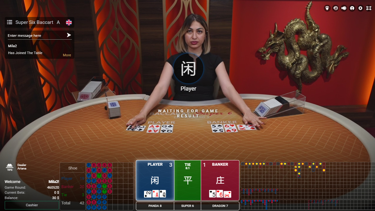 Evolution提供标准百家乐和 Super 6。两者都提供大量的边注。