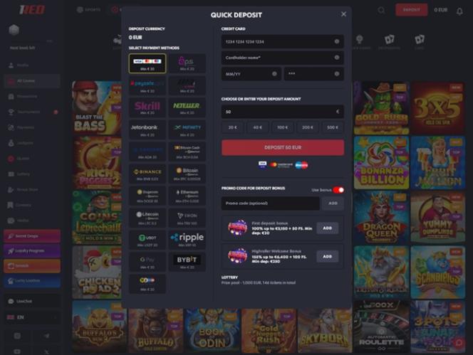 1Red 赌场提供丰富的银行服务选项。玩家可以使用各种加密钱包,并使用热门加密货币进行交易;而更传统的赌场玩家则可以选择知名的电子钱包、直接银行转账、支付卡等。