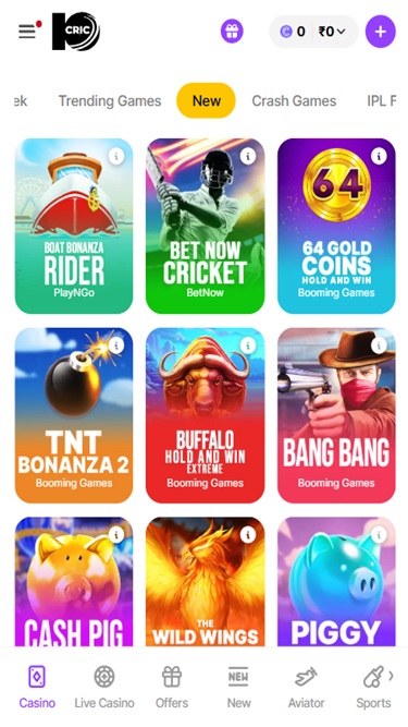10cric 赌场由 Microgaming, Net Entertainment, Playtech, 1x2gaming, Big Time Gaming, Evolution Gaming, Ezugi, Play'n GO, Quickspin, Relax Gaming, Yggdrasil, GameArt, Betgames, Nolimit City, Red Tiger Gaming, Booongo, Skywind, Triple Edge Studios, BGAMING, Northern Lights Gaming, Evoplay, Stormcraft Studios, OneTouch, Pocket Games Soft, Bulletproof Games, Gluck Games, Gameburger Studios, Pulse 8 Studios, Neon Valley Studios, Golden Rock Studios, Spearhead Studios, Super Spade Games, SpinPlay Games, Buck Stakes Entertainment, Games Global, Ash Gaming, Blueprint Gaming, EveryMatrix, Gaming Realms, Iron Dog Studio, Old Skool Studios, Foxium, Just For The Win, Reflex Gaming, PearFiction Studios, Slingshot Studios, Fortune Factory Studios, 4ThePlayer, Gamevy, Crazy Tooth Studio, High 5 Games, ReelPlay, SlotVision, Alchemy Gaming, Rarestone Gaming, Qtech Games, Snowborn Games, Boomerang Studios, Hacksaw Gaming, Max Win Gaming, Gold Coin Studios, Bang Bang Games, Peter And Sons, Aurum Signature Studios, Onlyplay, Armadillo Studios, Bombay Live, Kiron, Winfinity, 3 Oaks Gaming, Spribe, Circular Arrow, Gaming Corps and Neko Games提供支持,其赌场平台采用美观的网页设计,可通过您的网络浏览器加载。网站导航便捷,首页设有不同的标签页,方便您前往目标页面。此外,网站也全面支持移动端游戏,您可以在智能手机或平板电脑上进行博彩。