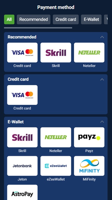 以下是 20Bet 的银行选项,其中包括存款和取款选择。
