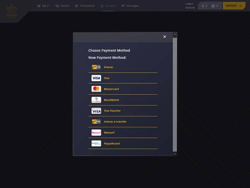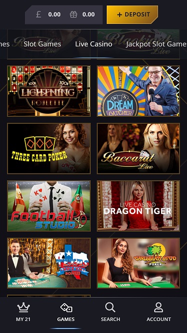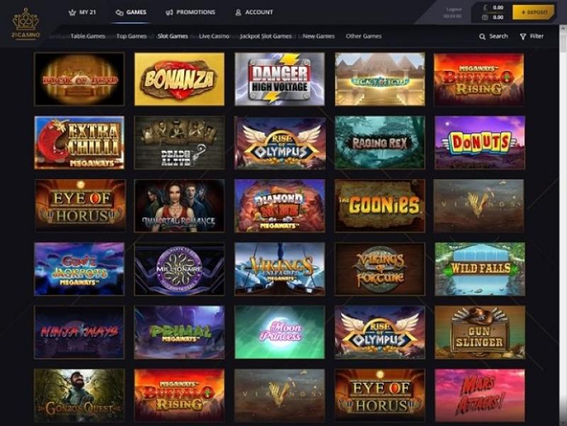 21 Casino 由 Microgaming, Net Entertainment, 1x2gaming, Barcrest, Big Time Gaming, ELK Studios, Evolution Gaming, EYECON, Ezugi, lightningboxgames, Novomatic, Oryx, Play'n GO, Rabcat, Relax Gaming, Thunderkick, Wazdan, Realistic Games, Booming Games, Stakelogic, Pragmatic Play, Nolimit City, Felt Gaming, Red Tiger Gaming, IGT, Spinomenal, Fantasma Games, SYNOT Games, Kalamba, Revolver Gaming, Skywind, Spinmatic, Triple Edge Studios, BGAMING, Northern Lights Gaming, Stormcraft Studios, Switch Studios, Electric Elephant Games, Pocket Games Soft, All41 Studios, Gameburger Studios, Pulse 8 Studios, Neon Valley Studios, Golden Rock Studios, Spearhead Studios, Swintt, Shuffle Master, SpinPlay Games, GONG Gaming, Blue Guru Games, Lady Luck Games, Buck Stakes Entertainment, Design Works Gaming, Games Global, 2by2 Gaming, Ainsworth, Bally Technologies, Blueprint Gaming, Endemol Games, Greentube, Leander Games, Merkur Gaming, NYX Interactive, Push Gaming, Tom Horn Gaming, WMS, Inspired Gaming, Gaming Realms, SG Interactive, Red7Mobile, CORE Gaming, Scientific Games, Side City Studios, Reel Time Gaming, Authentic Gaming, Iron Dog Studio, Old Skool Studios, Foxium, Betdigital, Just For The Win, Storm Gaming Technology, PearFiction Studios, Apollo Games, Wild Streak Gaming, Slingshot Studios, Fortune Factory Studios, Jade Rabbit Gaming, 4ThePlayer, AvatarUX, Gamevy, Crazy Tooth Studio, NetGaming, High 5 Games, ReelPlay, AGS Interactive, Alchemy Gaming, Plank Gaming, Black Pudding Games, Snowborn Games, Hacksaw Gaming, Max Win Gaming, Gold Coin Studios, Half Pixel Studios, SilverBack Gaming, Peter And Sons, Aurum Signature Studios, Armadillo Studios, Lucksome Gaming, Area Vegas, RAW iGaming, Leap Gaming, Wishbone Games, Spribe, Print Studios, Gaming Corps, HammerTime Games, Four Leaf Gaming, INO Games, Nailed It! Games, Live 5, Neko Games and Light & Wonder提供支持,赌场的游戏通过基于网络的即时游戏平台以及移动网站提供,可通过智能手机和平板电脑进行游戏。