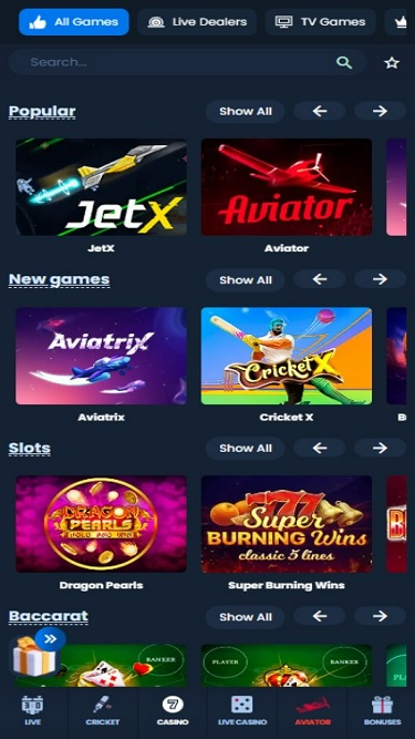 说到游戏数量,网上老虎机数不胜数,但我们会在评测的专题中专门讨论它们。玩家可以畅玩各种桌面游戏,例如二十一点、轮盘赌和百家乐。这些游戏还可以与真人荷官一起玩,带来更传统的赌场体验。