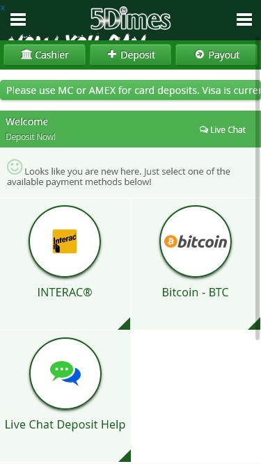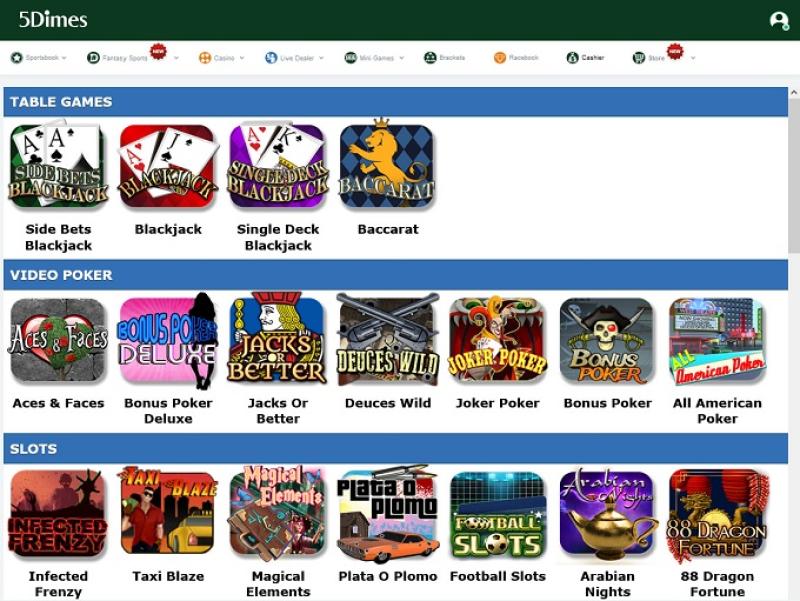 5Dimes 赌场由 Real Time Gaming and Fresh Deck Studios提供支持,其游戏通过可下载的软件以及允许您通过网页浏览器进行游戏的即时游戏平台提供。此外,我们还提供移动赌场,方便希望通过智能手机和平板电脑进行游戏的玩家。