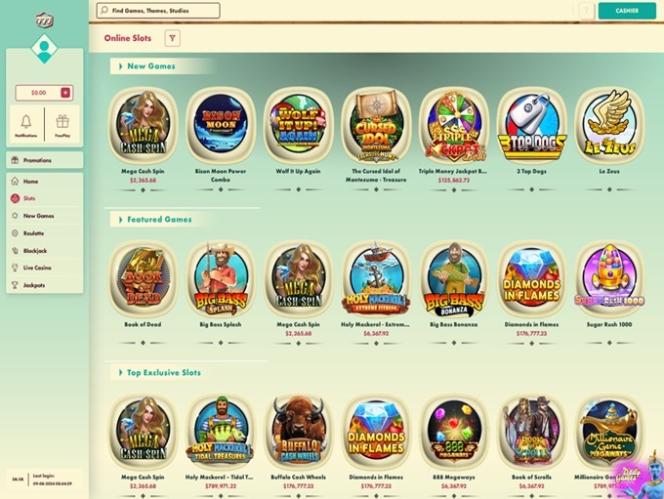 777 赌场提供众多老虎机游戏,其中包括数十款视频老虎机和少量经典游戏。追求大奖的玩家可以找到种类繁多的累积奖金,奖金高达数百万美元。