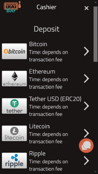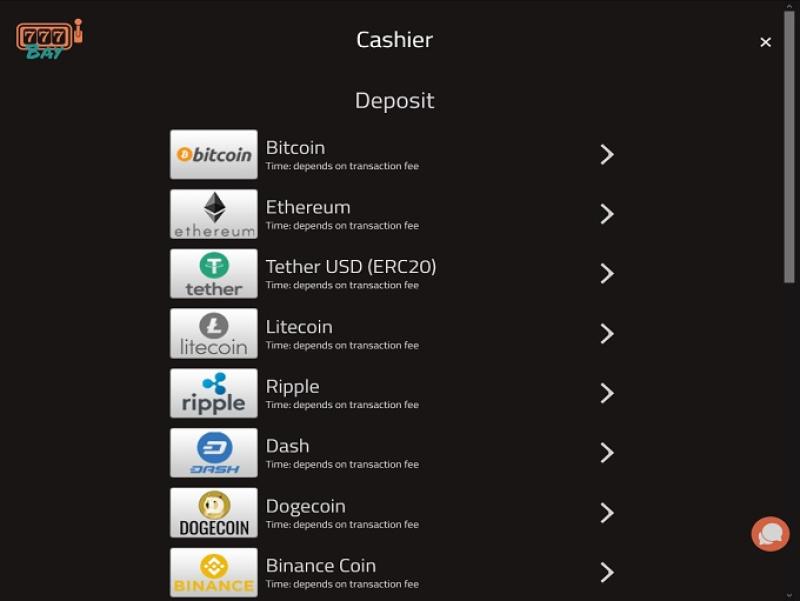 以下是 777Bay Casino 提供的存款和取款方式列表: