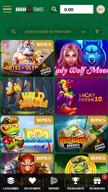 在 777Stakes 赌场,玩家可以玩到大量的老虎机游戏,并可以从各种游戏风格和主题中进行选择,包括经典老虎机、视频老虎机和累积奖金。