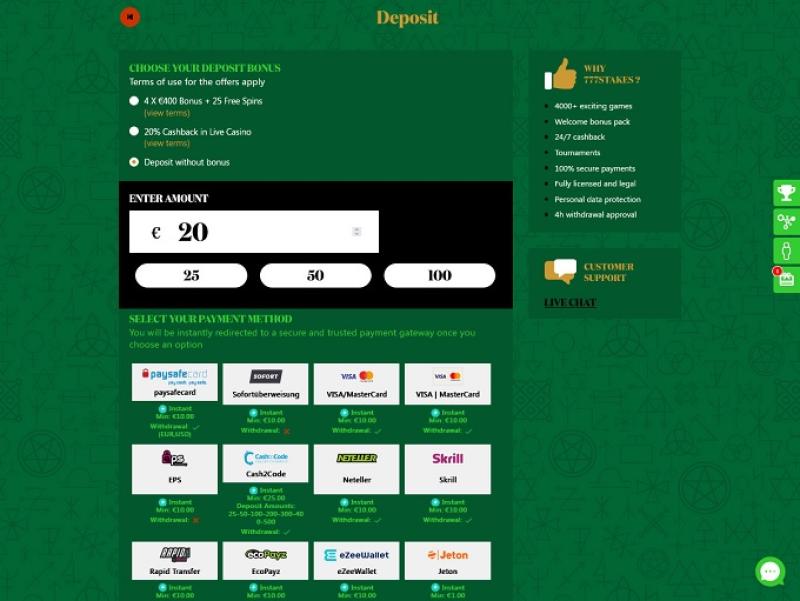 777Stakes 赌场使用 SSL 加密来保护玩家的敏感数据,因此如果您对这里的在线安全感到好奇,请依靠安全的浏览器连接和受保护的在线支付。