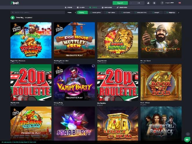 7bet Casino 为英国玩家提供丰富的游戏选择。我们提供涵盖多种游戏类型的独家发行游戏和众多经典游戏,可满足所有玩家的喜好。该品牌还致力于不断推出新游戏和新活动,丰富游戏库。