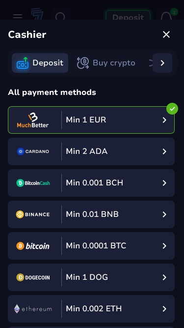 Banking银⾏业务选项 的 7Bit Casino