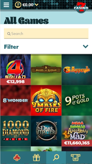 7Casino 由 Microgaming, Net Entertainment, Playtech, 1x2gaming, EYECON, iSoftBet, Play'n GO, Realistic Games, Red Tiger Gaming, IGT, Games Global, Blueprint Gaming and Inspired Gaming提供支持,其赌场游戏通过基于网页的即时游戏平台提供,可通过您的网络浏览器加载。该网站设计精良,主要针对手机用户,这也是运营商的首要目标。