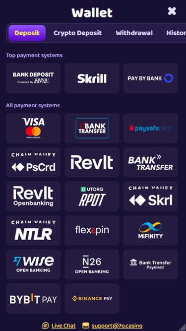 如果您偏好传统银行服务,可以选择银行电汇、常用的借记卡和信用卡、电子钱包(例如 Skrill、Revolut、Neteller、Apple Pay、GPay 等)以及其他选项。至于加密货币,目前可用的数字货币包括比特币、莱特币、狗狗币、卡尔达诺币、索拉纳币、波场币、泰达币、以太坊、瑞波币等等。