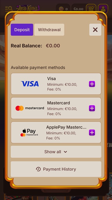 在忠诚度计划方面,Abu King Casino 采用五级会员制,玩家可根据自身情况逐步提升。存款越多,玩自己喜欢的游戏越多,解锁的奖励就越多,包括更高的提款限额、专属优惠、VIP 专属经理、网站促销活动和现金返还。