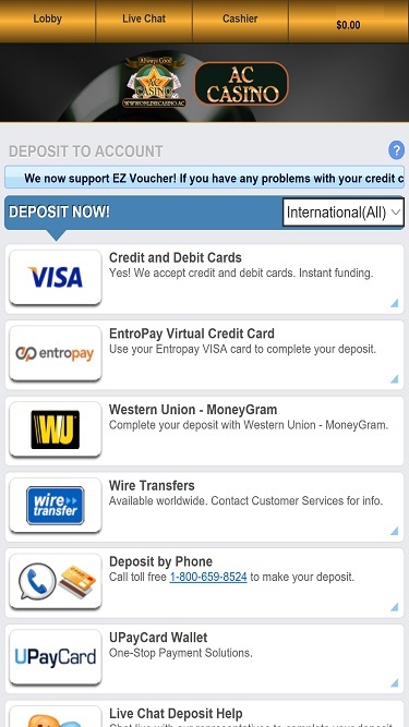 AC Casino 由 BetSoft提供支持,由于赌场采用网页平台,玩家可以通过互联网浏览器访问游戏库。此外,还为那些想在智能手机和平板电脑上玩游戏的玩家提供移动赌场。其他游戏