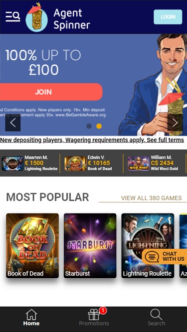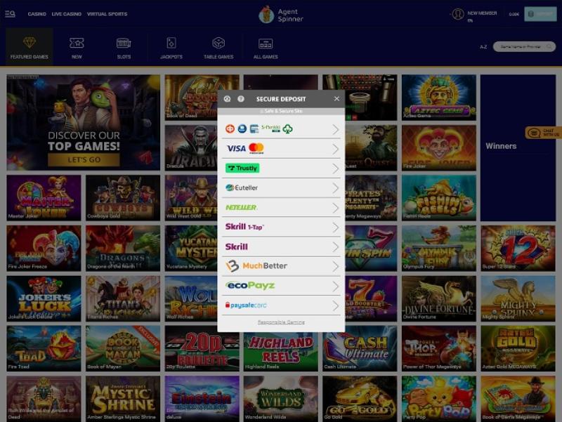 Agent Spinner 赌场由 Microgaming, Net Entertainment, BetSoft, ELK Studios, Evolution Gaming, Play'n GO, Quickspin, Thunderkick, Yggdrasil, Pragmatic Play, Red Tiger Gaming, IGT, Triple Edge Studios, Switch Studios, Games Global, NextGen, Push Gaming, WMS, Cayetano, Just For The Win and Fortune Factory Studios提供支持,其游戏通过基于网页的即时游戏平台提供,可直接通过您的网络浏览器加载。该网站还全面支持移动端游戏,这意味着您可以在智能手机或平板电脑上畅玩。