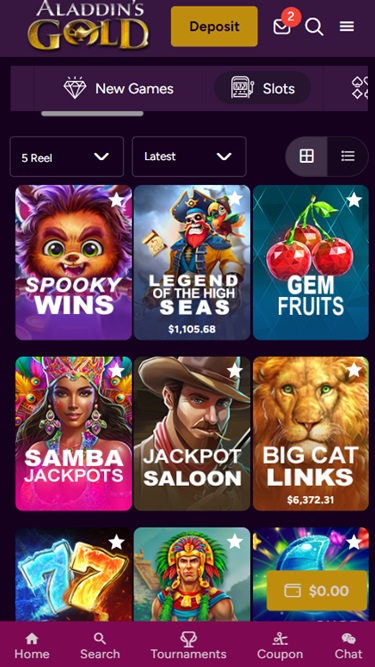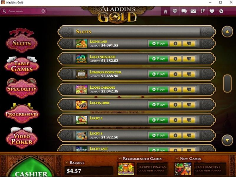 Aladdin's Gold Casino 的游戏完全由 Real Time Gaming and Spinlogic Gaming (RTG) 软件提供支持,该软件以快节奏和用户友好而闻名。RTG 自 1998 年成立以来,使用其软件的赌场往往提供丰厚的奖金。该软件提供两个版本,包括下载版和 Flash 版,每个版本都提供丰富的游戏选项,包括老虎机、桌面游戏和视频扑克。RTG 的系统会持续接受技术系统测试 (TST) 的公平性和随机性测试。