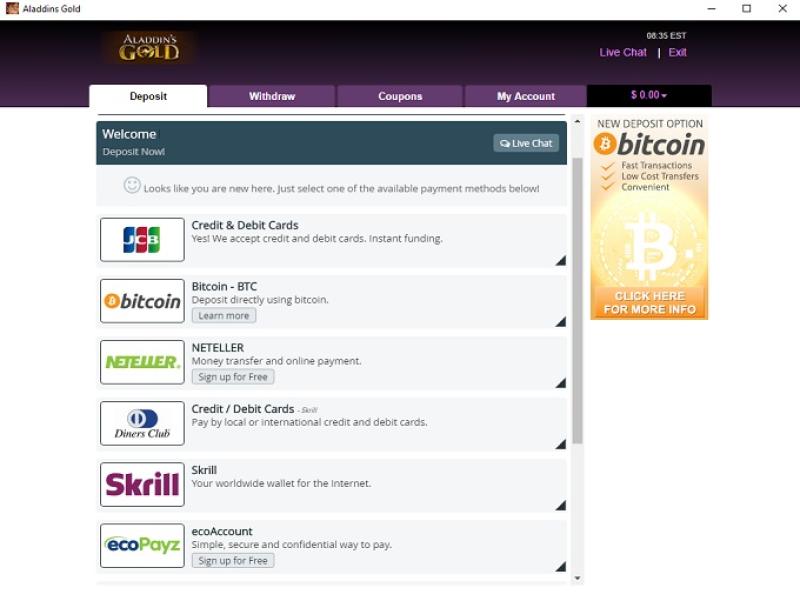 仔细查看Aladdin's Gold Casino的条款和条件,没有任何明显的不公平或掠夺性条款,而且Club World被认为是最好的在线游戏运营商之一,所以我相信一切都是公平的。Aladdin's Gold的银行系统非常完善,网站提供信用卡、ECO卡、Neteller和Skrill存款,最低存款额为35美元。提款方式包括支票、银行电汇、ECO卡、Skrill、Neteller和信用卡支付,每种方式的最低支付额度不同。提款时间为即时到5个工作日。