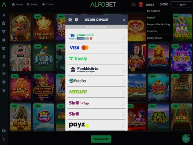 Alfobet 是一家功能全面的在线赌场和博彩网站,提供丰富的赌场游戏,例如真钱老虎机、真人荷官、即时崩溃游戏以及传统的桌面游戏。该品牌接受来自加拿大、新西兰、芬兰和爱尔兰的玩家。它旨在为玩家提供丰富的游戏选择,以及专门的体育和电子竞技博彩平台。