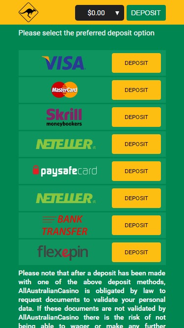 All Australian Casino 由 Net Entertainment and Amatic Industries提供支持,其赌场游戏通过网页平台提供,您可以通过网页浏览器访问游戏。该赌场还为想要在智能手机和平板电脑上玩游戏的玩家提供移动网站。Baccarat