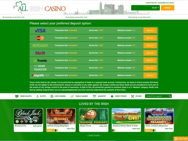 All Irish Casino 由 Microgaming, Net Entertainment, Amatic Industries, Barcrest, Big Time Gaming, Thunderkick, Games Global, Bally Technologies, Blueprint Gaming, NextGen, WMS and Scientific Games提供支持,其游戏通过基于网络的平台以及移动网站提供。Baccarat