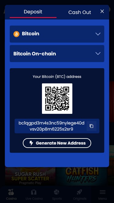 其主要卖点之一是专注于加密货币支付 ,首页就明确显示了对多种加密货币的支持。快速交易、灵活的银行服务和更便捷的注册流程显然也是其吸引力所在。对于那些更倾向于使用加密货币而非传统支付方式的玩家来说,这很可能是最大的吸引力之一。