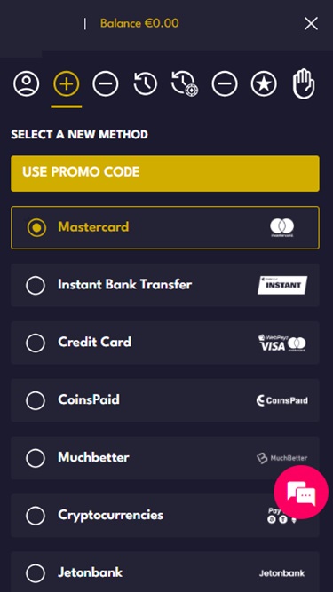 该博彩网站允许玩家使用多种支付方式,包括现代加密货币。常规支付选项包括Visa 、 Mastercard 、 Paysafecard 、 Skrill 、 Netller 、 MiFinity和Neosurf ,而加密货币选项包括比特币、比特币现金、以太坊、波场币、泰达币、瑞波币和USD Coin 。
