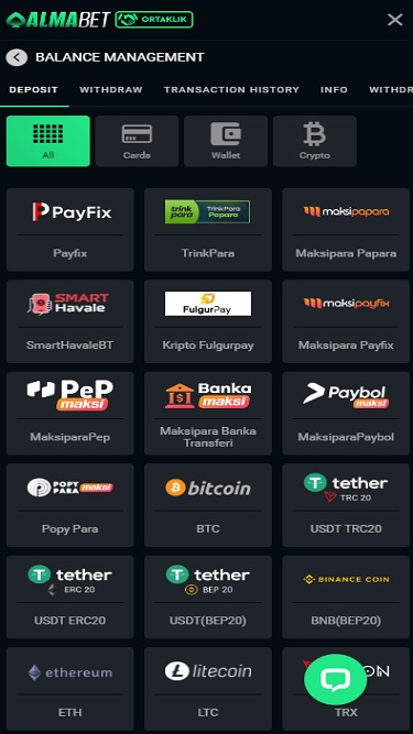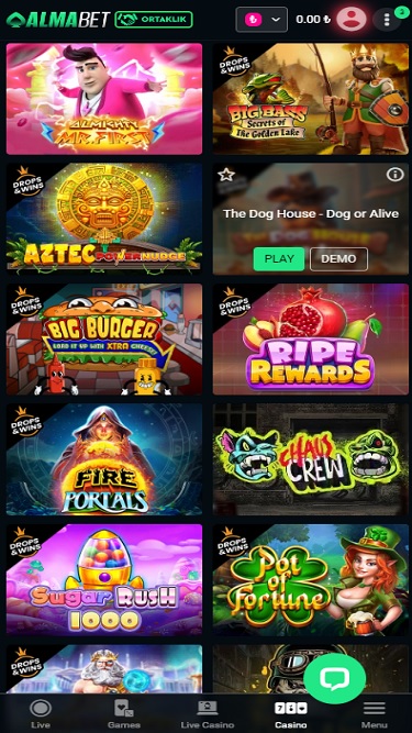 Almabet Casino 的界面非常简洁,玩家可以快速找到自己喜欢的游戏。游戏库非常庞大,涵盖了骰子、基诺、Crash 等热门加密货币游戏,以及彩票和其他引人入胜的博彩内容。