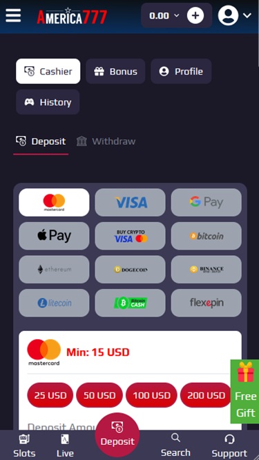 Banking银⾏业务选项 的 America777 Casino