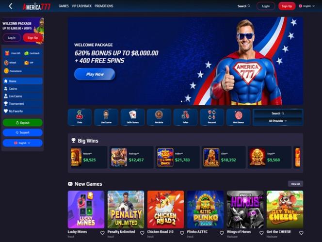 我们访问时,America777 拥有近五千款适合美国玩家的老虎机游戏,适合所有类型的玩家。游戏库中既有经典老虎机游戏,也有顶级新游戏,这些游戏拥有出色的功能、出色的画面、逼真的音效设计、精彩的主题等等。
