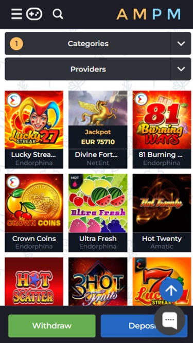 AMPM 拥有超过 5000 款令人印象深刻的视频老虎机游戏。无论经验水平和喜好如何,玩家都能在这个游戏网站上找到自己喜欢的游戏。