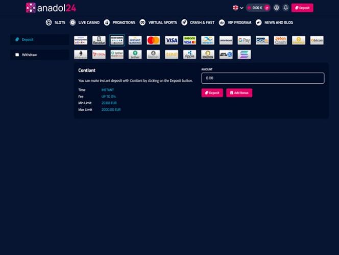 Anadol24 的一大卖点是其丰富的促销计划,其中包含众多奖励和促销活动,旨在提升您的游戏体验。玩家可以领取迎新优惠、每周多次奖励,或参与仅限邀请的会员计划,获得各种奖励。