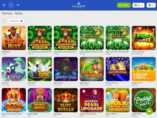 Atlantic Club Casino 由 BetSoft, 1x2gaming, Evolution Gaming, playson, Rival, Thunderkick, Vivo Gaming, Yggdrasil, Arrows Edge, Booming Games, Stakelogic, Pragmatic Play, Red Tiger Gaming, ZEUS Services, Booongo, LuckyStreak, Spinomenal, Felix Gaming, Inbet Games, Skillzzgaming, Fugaso, Kalamba, Nucleus Gaming, Spadegaming, BGAMING, Fazi, Evoplay, SA Gaming, OneTouch, Pocket Games Soft, Triple PG, Bulletproof Games, Gluck Games, Mascot Gaming, TVBet, Swintt, Super Spade Games, Mancala Gaming, SmartSoft Gaming, KA Gaming, Caleta Gaming, CT Interactive, Push Gaming, Wager Gaming, Mr Slotty, Noble Gaming, Reflex Gaming, Apollo Games, RubyPlay, 4ThePlayer, AvatarUX, Groove Gaming, ReelPlay, Vibra Gaming, BB Games, Boomerang Studios, SimplePlay, Bang Bang Games, Gamzix, Triple Cherry, Dragon Gaming, Peter And Sons, Charismatic, Lotto Instant Win, Onlyplay, FastSpin, Playgon, Dragoon Soft, Bombay Live, 3 Oaks Gaming, Funky Games, Bet2Tech and BetSolutions提供支持,赌场的游戏通过基于网络的平台提供,可直接通过您的互联网浏览器进行游戏。