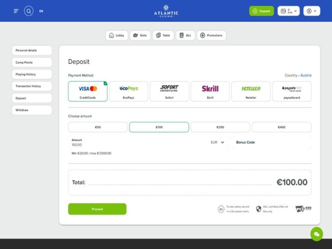 Banking银⾏业务选项 的 Atlantic Casino Club